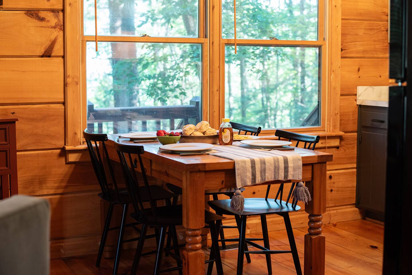 Outdoor Space Step into a private mountain retreat with stunning forest and mountain views, and soothing sounds of the creek below. Relax on the front porch in comfortable seating or soak in the hot tub on the lower porch while taking in the scenery. The flat, forested yard is perfect for kids and pets, and the large fire pit invites cozy evenings roasting s’mores under the stars. With only six other homes sharing the mountain, you're invited to enjoy true solitude during your getaway. Living Room Enter the living room and sink into the cozy couch facing the stone, wood-burning fireplace. Board games, puzzles, card games, and kid-friendly books are tucked inside the coffee table and wooden bench for hours of fun. Firewood is available for purchase on the property. Fiber internet is great for working remotely or streaming your favorite shows from the Roku TV. Kitchen & Dining Our recently renovated kitchen has everything you need to feel at home. The brand-new 5-burner gas range, including a pancake griddle, is perfect for a leisurely brunch. Non-breakable dishes, wine glasses, and cookware make mealtime easy, and the dishwasher handles cleanup effortlessly. The dining table seats 4 adults comfortably, with an extra folding chair or high chair available for a 5th guest. Primary Bedroom Unpack into the dresser or hang clothes on the garment rack, then sink into the comfy queen bed. Wake up to serene mountain views of the Rich Mountain Wilderness right from your window—it’s the perfect start to the day. Secondary Bedroom This kid-friendly bedroom also delights adults! The twin-over-full bunk sleeps 3 children or 2–3 adults ready to relive childhood memories. A TV with built-in DVD player and a selection of family DVDs makes rainy days just as fun as sunny ones. Full Bathroom The updated bathroom features a bathtub/shower combo and comes stocked with all the essentials - shampoo, conditioner, body soap, fresh towels, washcloths, and hand towels for your stay. Getting There The final ½ mile gravel road requires an AWD or 4WD vehicle. Plan ahead for a smooth arrival!